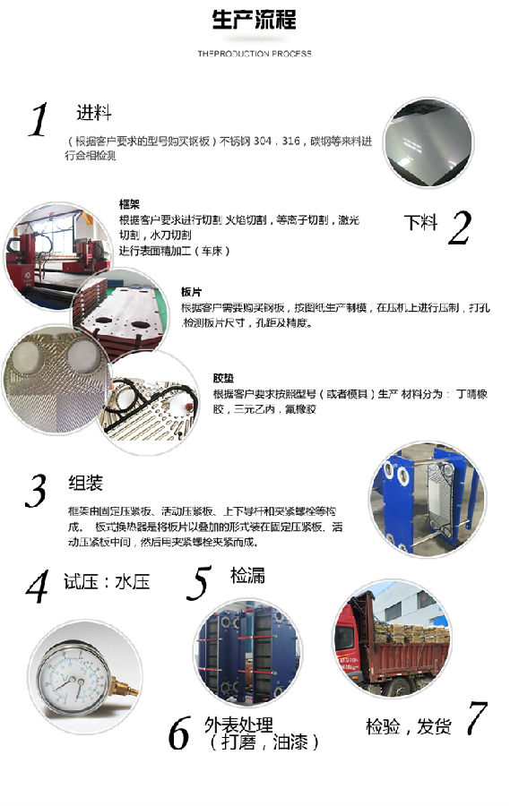 • 板式換熱器是由一系列具有一定波紋形狀的金屬片疊裝而成的一種新型高效換熱器。各種板片之間形成薄矩形通道,通過板片進行熱量交換。板式換熱器是液—液、液—汽進行熱交換的理想設備。它具有換熱效率高、熱損失小、……